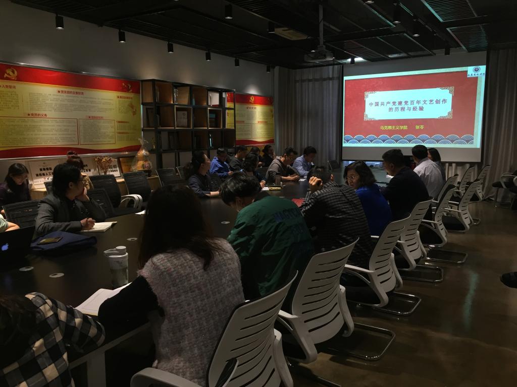 张苓以《中国共产党成立百年文艺创作的历程与经验》为题,从革命的时代、探索的时代和发展的时代三个方面为同学们进行了系统深入的党史学习教育。在宣讲中,她用丰富的史料为同学们讲述了我国从新民主主义文艺到社会主义文艺再到新时代中国特色社会主义文艺的历史性飞跃,深入分析了我国文艺理论研究和建设,让同学们准确把握了党的历史发展主题主线、主流本质,让红色基因、革命薪火代代传承。