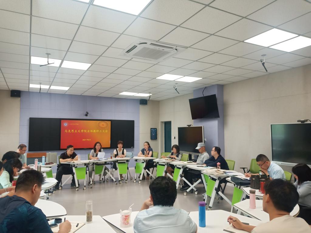 会议传达了学校召开新学期工作部署会议精神和一系列相关文件,汇报了开学前一周理论学习中心组开展的专题学习教育情况。对新学期思政课教学、思政课改革创新、新教材集体备课、教师队伍建设等进行了部署,提出了具体明确的目标要求,要进一步加大思政课改革创新力度,打造一支数量充足、素质优良的思政课教师队伍。通过开展“三集三提”活动强素质提质量,即“集中研讨提问题,集中培训提素质,集中备课提质量”,进一步要通过加强课程设计,打造优质高效课堂。