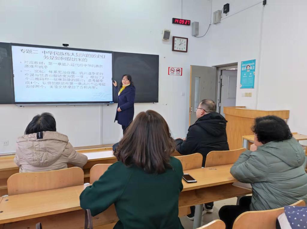 活动过程中,各教研室推选1名教师就新版教材的某个章节开展教学展示活动,结合教学展示活动各教研室认真分析、交流2021版教材内容的变化,对于新版教材中的难点问题展开了热烈的讨论,集思广益解决新版教材授课过程中存在的“痛点”。各教研室一致认为2021版教材的编制和使用对思政课教学提出了新的要求和挑战,各位思政课教师必须认真思考新版教材的课程结构设计,结合党和国家发展变化深刻领会新版教材调整的原因以及背后的深刻逻辑,以扎实的学识站稳思政讲台、讲好思政课。